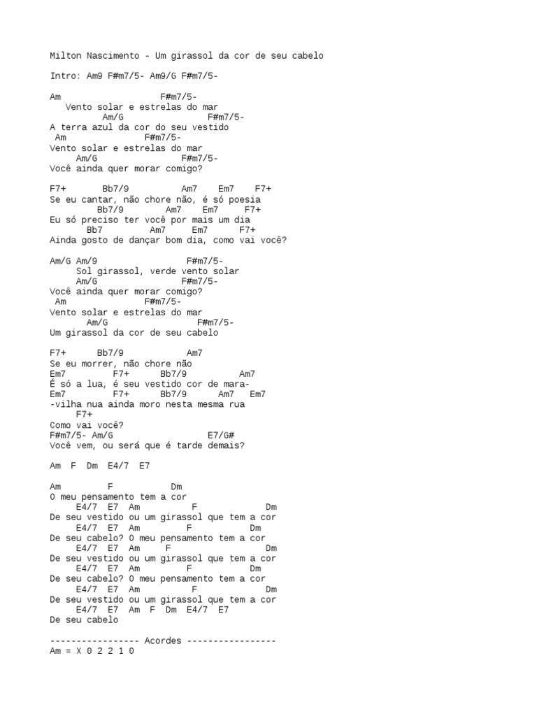Um Girassol Da Cor De Seu Cabelo Milton Nascimento Cifra Club